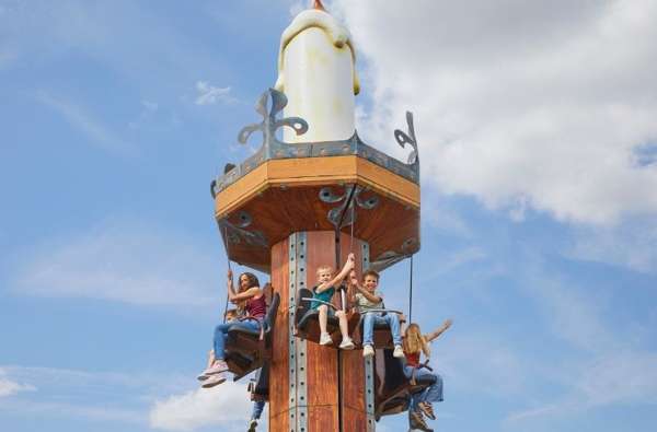 Nehme Platz und ziehe dich mit eigener Muskelkraft bis zu neun Metern an der Kerze hoch. Während die Kerze sich langsam dreht, schaust du von oben auf Wonderland und Rick’s Abenteuerburg herab. Nur für Schwindelfreie!