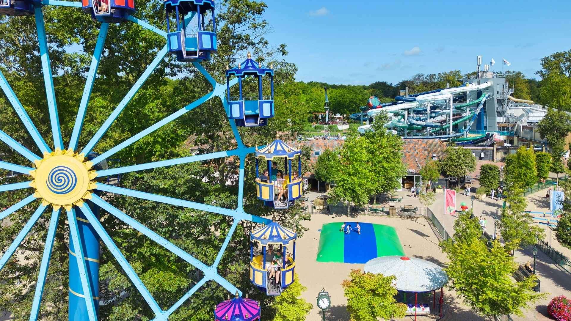 Von diesem Riesenrad hat man eine schöne Aussicht auf Duinrell und den nahegelegenen Spielplatz.
