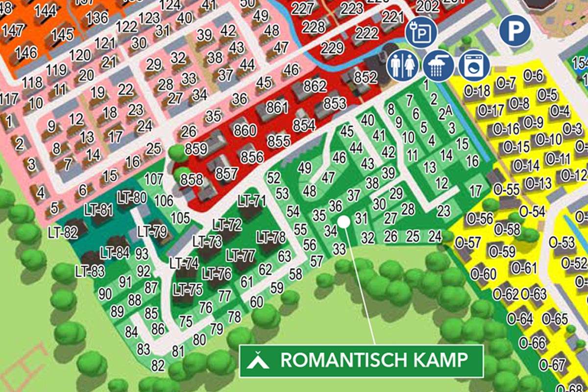 Gut versteckt zwischen Hecken und unter einzelnen Bäumen liegt unser „Romantisch Kamp“. Wenn abends die Sonne untergeht, werden Sie merken, weshalb wir so verliebt in diesen Platz sind. Ganz nah beim „Romantisch Kamp“ liegt das lebendige Herz von Duinrell: Duinrell Plaza. Hier finden Sie unser La Place Restaurant Duinrell Plaza, den Duinrell Superstore, den Duinrell Pub und das Take Away. Das Besondere am „Romantisch Kamp“ ist, dass es ein relativ großer Platz ist, aber durch die vielen Hecken, Bäume und die Lodgezelte gut unterteilt ist und einen kleinräumigen Eindruck macht. An den meisten Stellen bietet es viel Sonne.