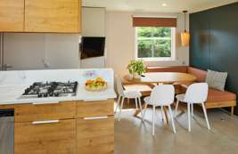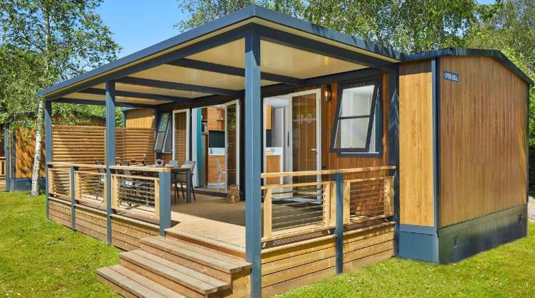Unser neuer Komfort-Duingalow O'hara für 6 Personen verbindet den Charme von Camping und Outdoorleben mit dem Luxus einer komfortablen Unterkunft. In dem geschmackvoll eingerichteten Duingalow fühlt sich jeder sofort zu Hause. Dank des modernen Designs und der Verwendung natürlicher Baustoffe fügt sich die Unterkunft gut in die umliegende Natur ein.