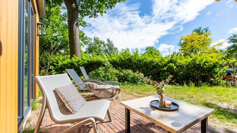 In unserem neuen 5-Personen-Premium-Plus-Duingalow haben Sie den Luxus von zu Hause in einem komfortablen und kompakten Ferienhaus. Das Tiny House ist pfiffig, attraktiv und luxuriös eingerichtet und mit allen modernen Annehmlichkeiten ausgestattet. Und dank der großen überdachten Privatterrasse können Sie das Leben im Freien während Ihres Urlaubs optimal genießen.