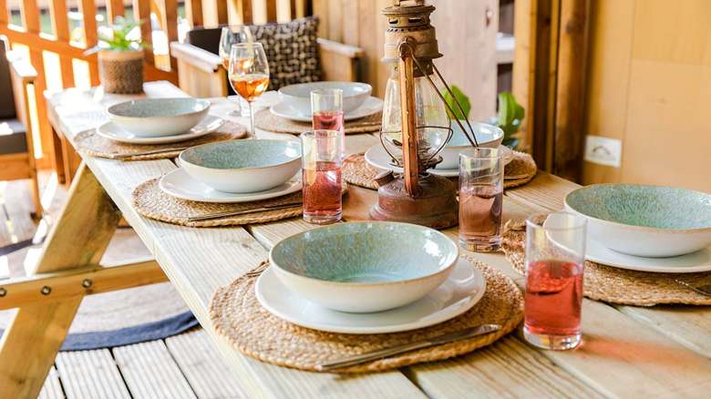 Die große überdachte Veranda ist mit den neuen Lodgezelten direkt verbunden und mit einem Picknicktisch und zwei Loungesesseln ausgestattet, um den Aufenthalt im Freien voll und ganz zu genießen. Wollen Sie duschen, dann befindet sich das Sanitärgebäude nur einen kurzen Spaziergang von 1 Minute entfernt.