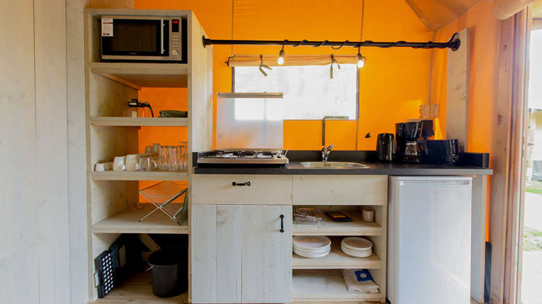 Die Ranger Lodge ist effizient gestaltet und mit allen Bequemlichkeiten ausgestattet. Sie verfügen über ein eigenes Badezimmer mit Dusche, WC und Waschbecken, eine voll ausgestattete Küche mit Gasherd, Mikrowelle und Kühlschrank, einen dekorativen Kamin und eine gemütliche Sitz- und Essecke. Der Wohnbereich hat große Fenster, die viel Tagesicht bieten.
