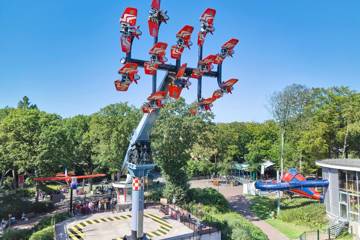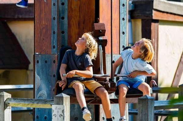 Nehme Platz und ziehe dich mit eigener Muskelkraft bis zu neun Metern an der Kerze hoch. Während die Kerze sich langsam dreht, schaust du von oben auf Wonderland und Rick’s Abenteuerburg herab. Nur für Schwindelfreie!
