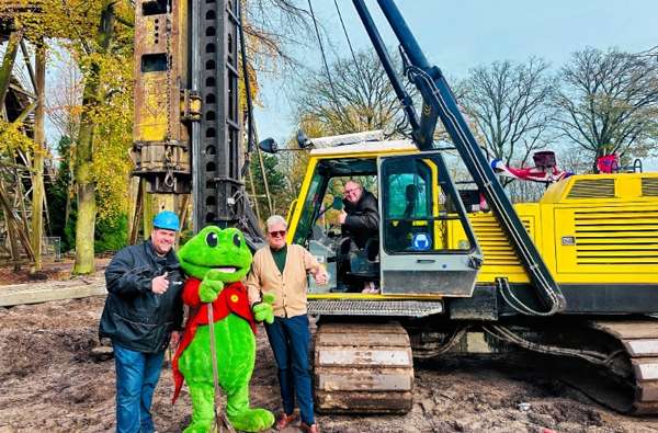 Im Beisein unseres Direktors Philip van Zuylen van Nijevelt und Rick dem Frosch wurde der allererste Pfahl für unsere neue Kikkerachtbaan 2.0 gesetzt. Ein denkwürdiger Meilenstein.
