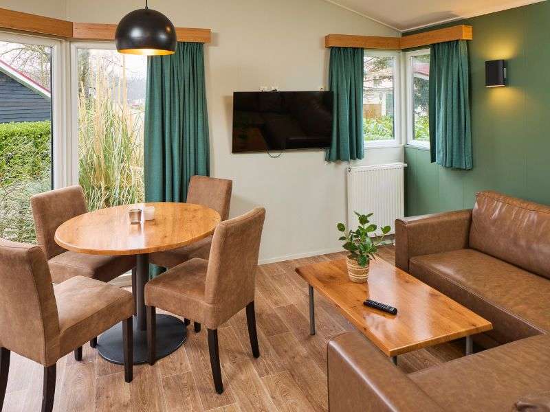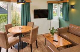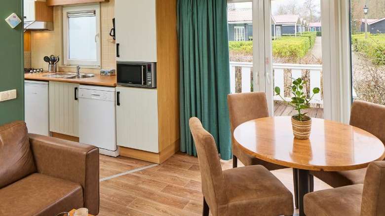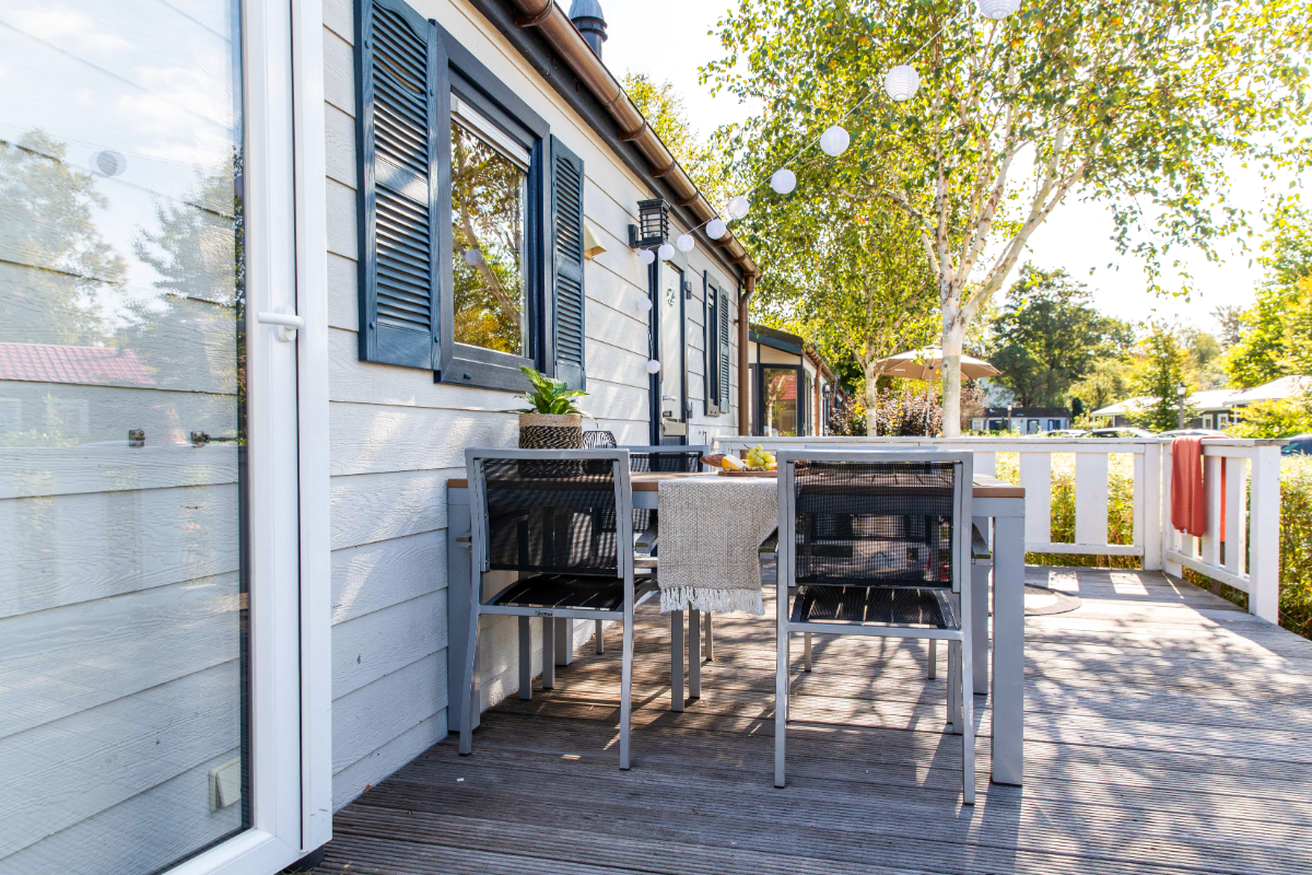 Der Komfort Duingalow für 4 Personen wird dafür sorgen, dass Sie sofort in Sommerlaune sind! Der Duingalow befindet sich mitten im ruhigen und grünen Teil des Ferienparks. An der Front der Ferienwohnung befindet sich eine Holzterrasse, auf der Sie die Sonne voll genießen können! Ein großartiger Bonus: Auf der Terrasse warten sofort zwei bequeme Sonnenliegen auf Sie.