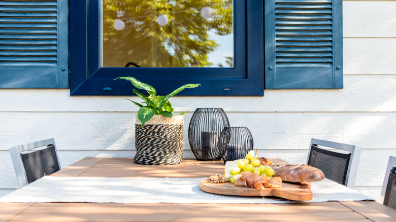 Größe: 10m x 3,5m exklusive der Veranda. Gartenmöbel und Sonnenliegen sind im Preis inbegriffen.
