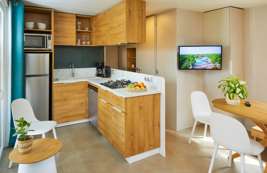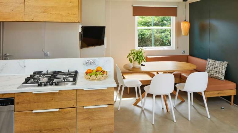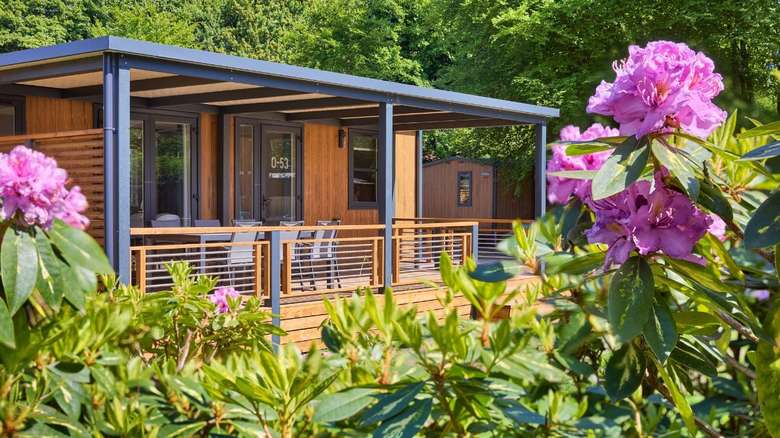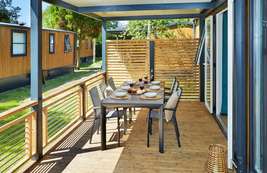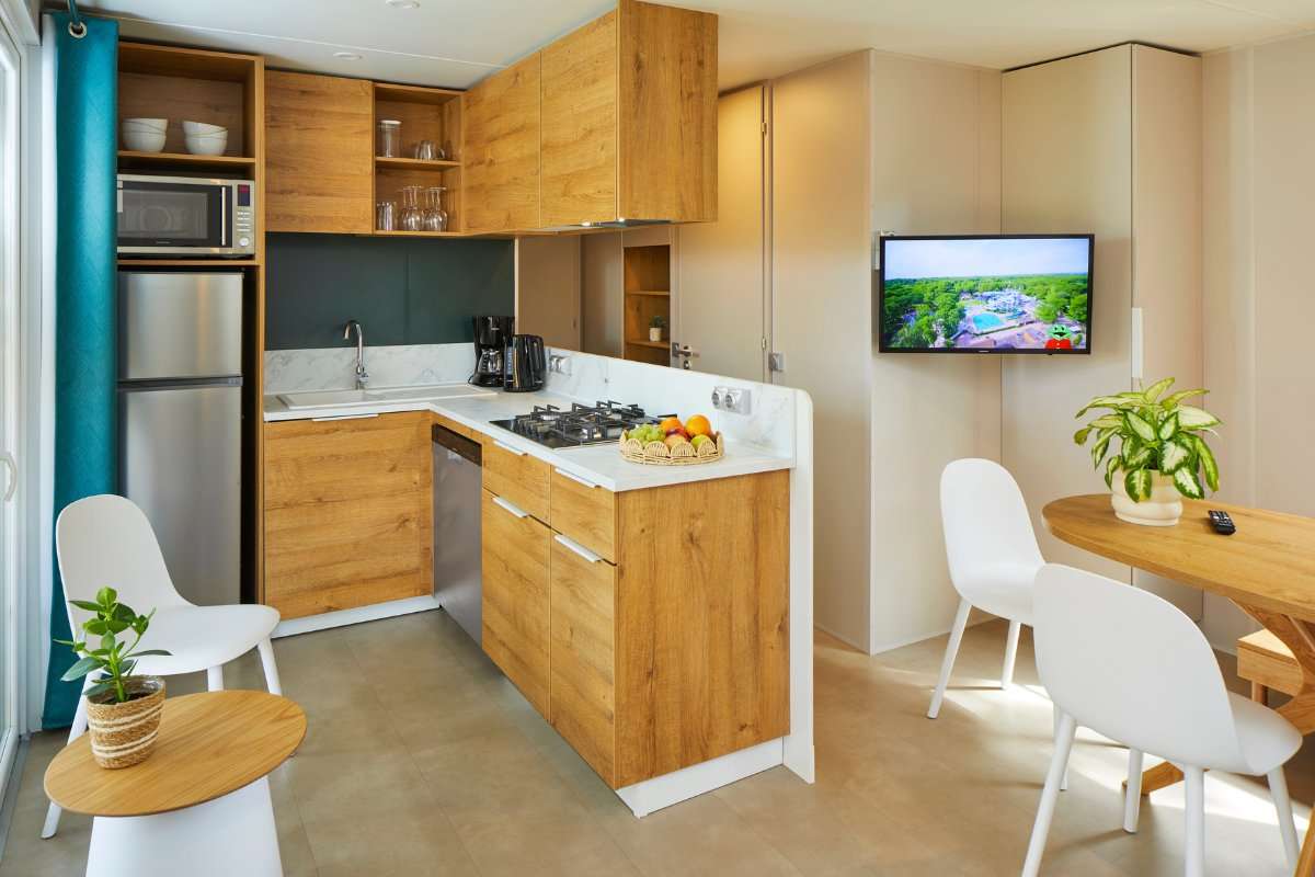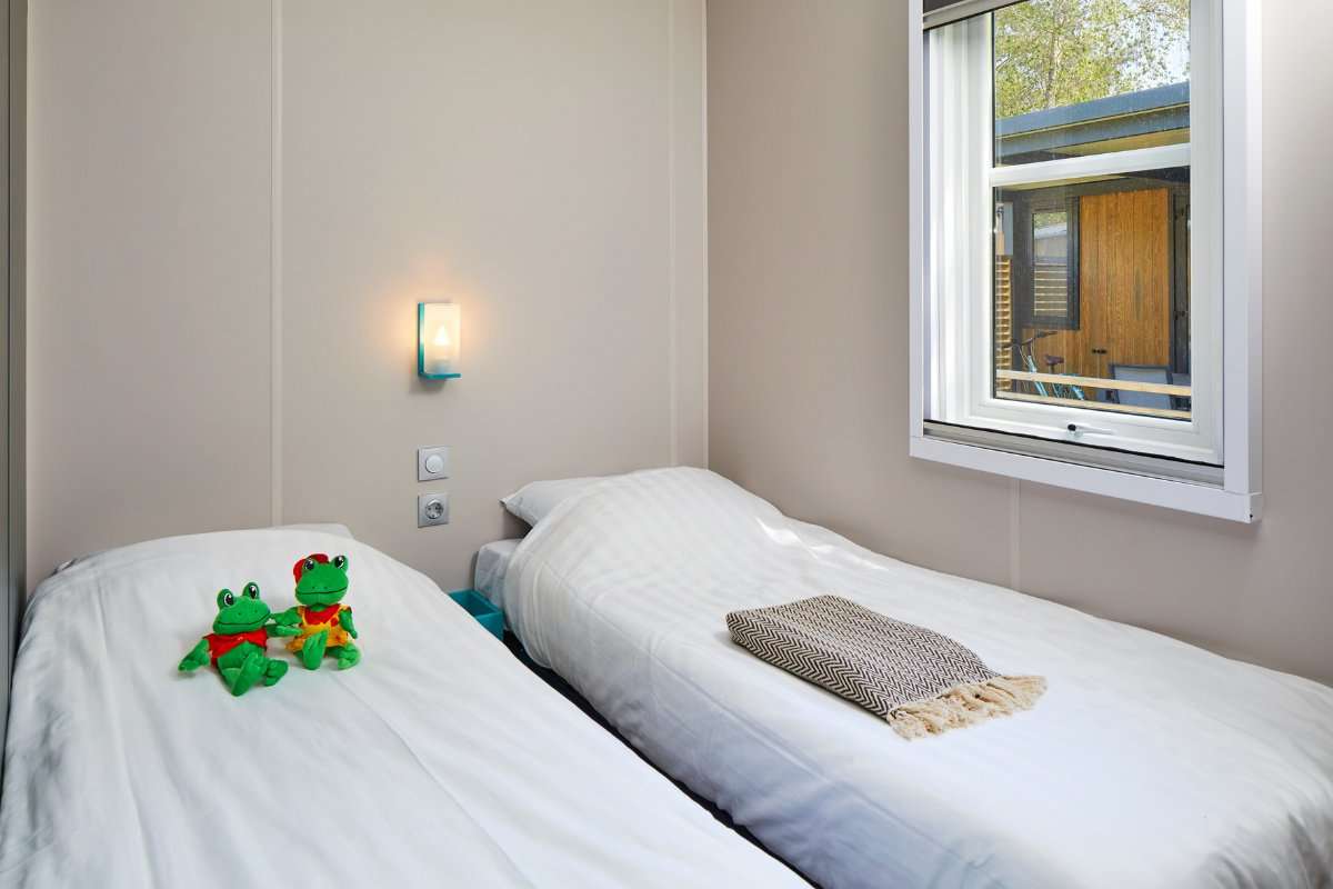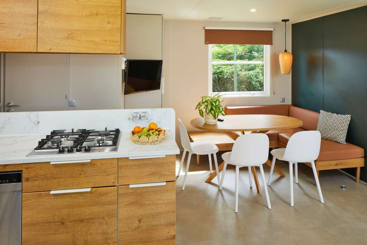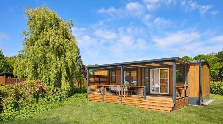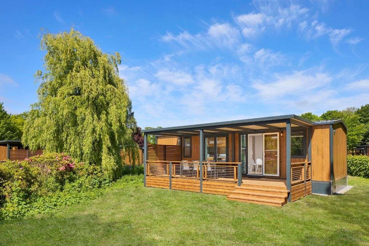 Unser neuer Komfort-Duingalow O'hara für 6 Personen verbindet den Charme von Camping und Outdoorleben mit dem Luxus einer komfortablen Unterkunft. In dem geschmackvoll eingerichteten Duingalow fühlt sich jeder sofort zu Hause. Dank des modernen Designs und der Verwendung natürlicher Baustoffe fügt sich die Unterkunft gut in die umliegende Natur ein.