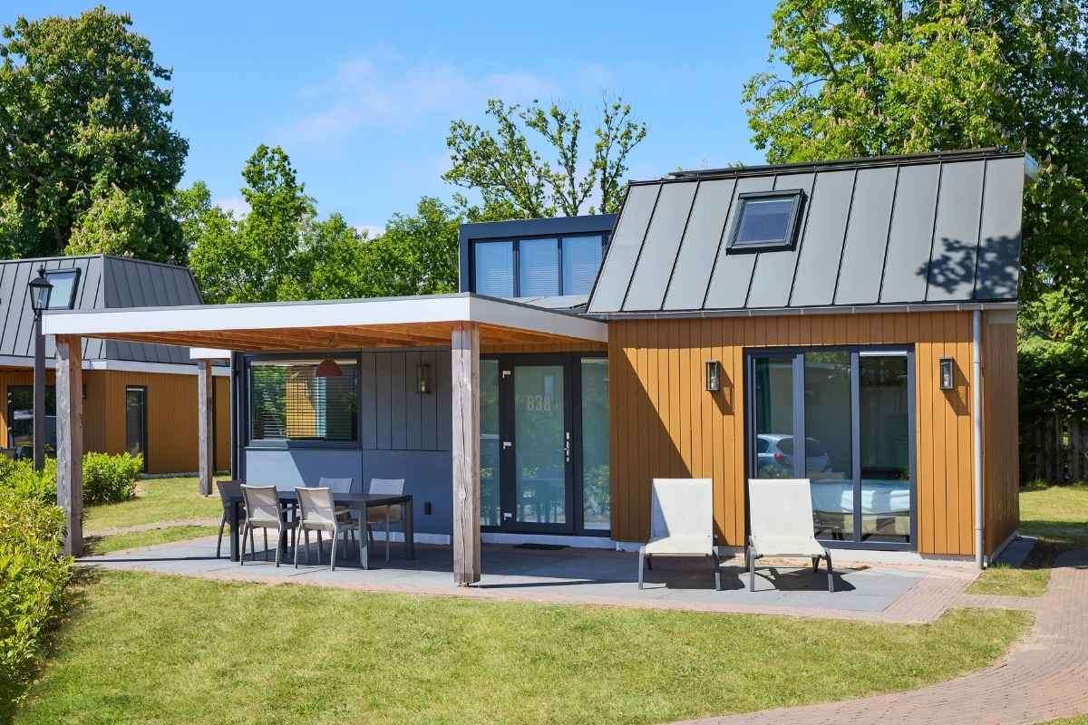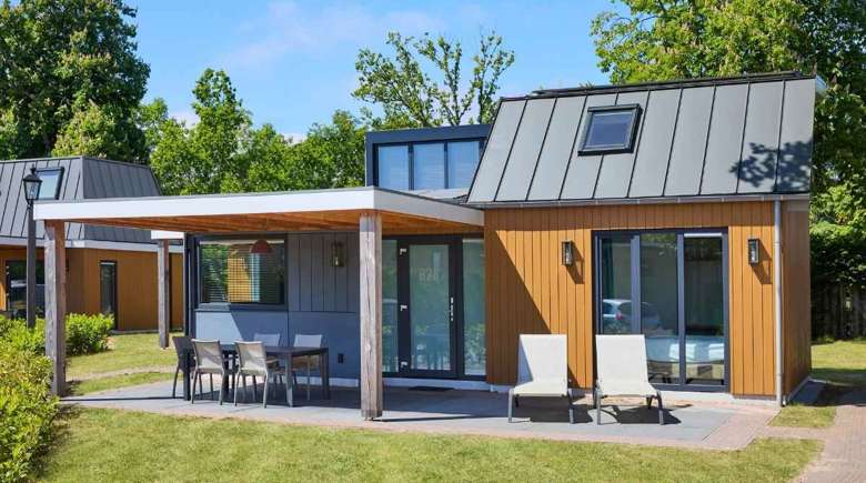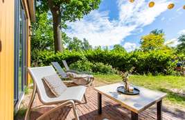 In unserem neuen 5-Personen-Premium-Plus-Duingalow haben Sie den Luxus von zu Hause in einem komfortablen und kompakten Ferienhaus. Das Tiny House ist pfiffig, attraktiv und luxuriös eingerichtet und mit allen modernen Annehmlichkeiten ausgestattet. Und dank der großen überdachten Privatterrasse können Sie das Leben im Freien während Ihres Urlaubs optimal genießen.
