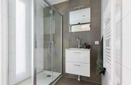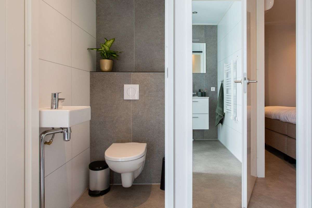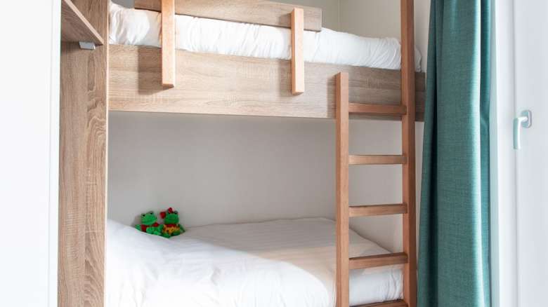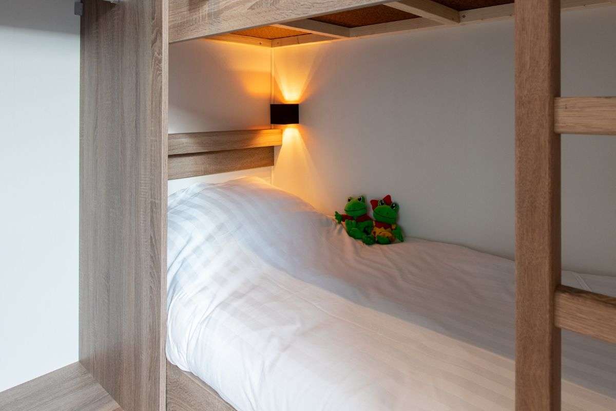 In diesem Duingalow befinden sich drei Schlafzimmer, darunter ein Doppel-Boxspringbett, zwei Einzel-Boxspringbetten und ein Etagenbett. Ein Kinderbett kann in den Schlafzimmern nicht aufgestellt werden. Das Ferienhaus verfügt außerdem über ein luxuriöses Badezimmer mit einer begehbaren Dusche und es steht eine separate Toilette zur Verfügung.