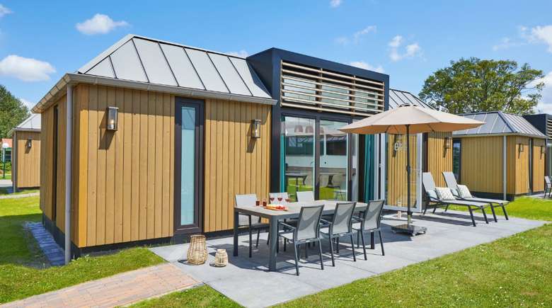 Der 6-Personen Premium Plus Duingalow hat eine Gesamtgröße von +- 10m x 5m.