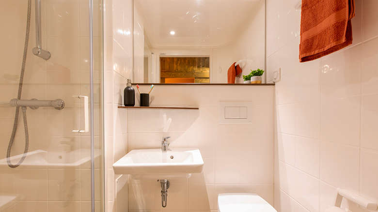 Das Luxus-Lodgezelt hat außerdem ein eigenes Badezimmer mit Dusche, Waschbecken und Toilette. Sie können daher problemlos im eigenen Zelt duschen, ohne dafür ins Sanitärgebäude gehen zu müssen.