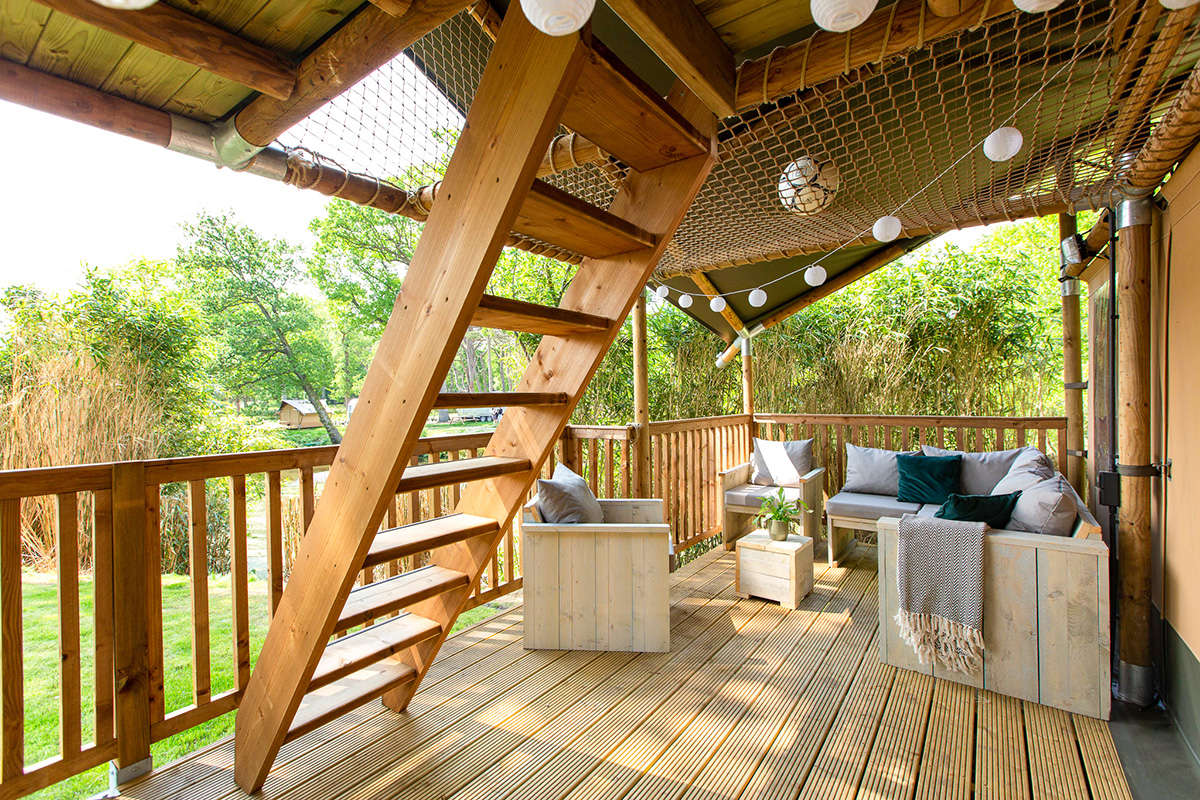Diese abenteuerlichen Lodgezelte sind für 7 Personen geeignet und sorgen für einen wunderbaren Glamping-Urlaub auf dem Landgut Duinrell.