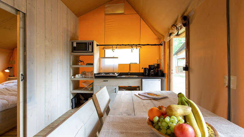 Die Ranger Lodge ist effizient gestaltet und mit allen Bequemlichkeiten ausgestattet. Sie verfügen über ein eigenes Badezimmer mit Dusche, WC und Waschbecken, eine voll ausgestattete Küche mit Gasherd, Mikrowelle und Kühlschrank, einen dekorativen Kamin und eine gemütliche Sitz- und Essecke. Der Wohnbereich hat große Fenster, die viel Tagesicht bieten.