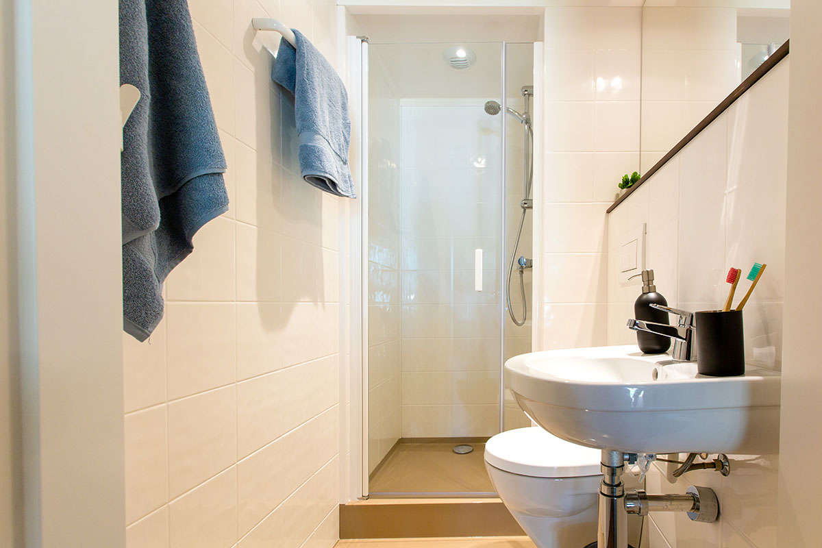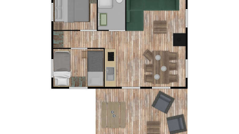 Es gibt zwei Schlafzimmer: ein Schlafzimmer für zwei Personen mit Doppelbett, ein Schlafzimmer mit Etagenbett und einem Einzelbett. Die Betten sind mit Luxusmatratzen ausgestattet. Ein Kinderbett kann nicht in den Schlafzimmern aufgestellt werden.
