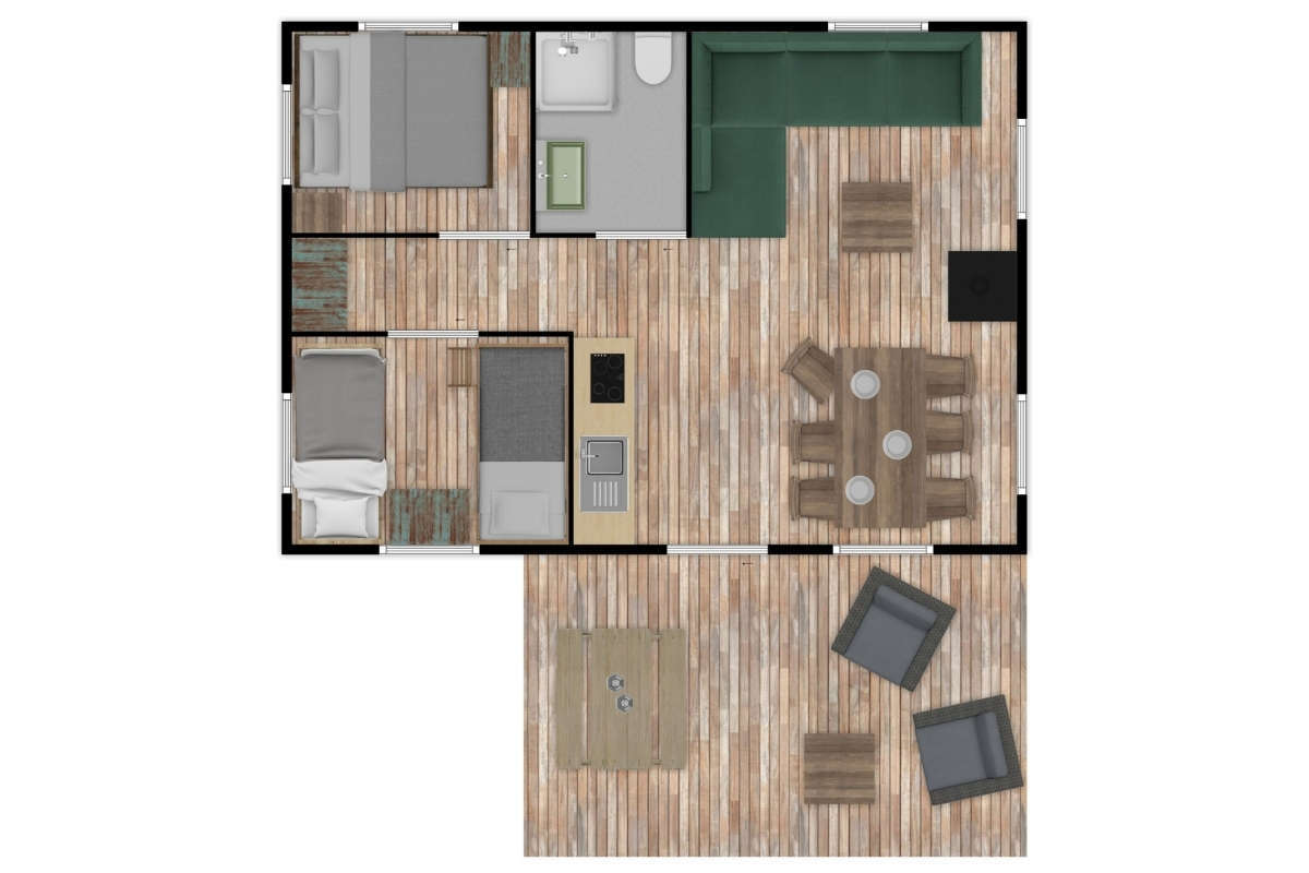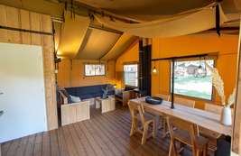 Die Lodgezelte sind mit allen modernen Bequemlichkeiten ausgestattet. Die überdachte Veranda und die Holzmöbel ermöglichen es Ihnen, das Leben im Freien in vollen Zügen zu genießen.