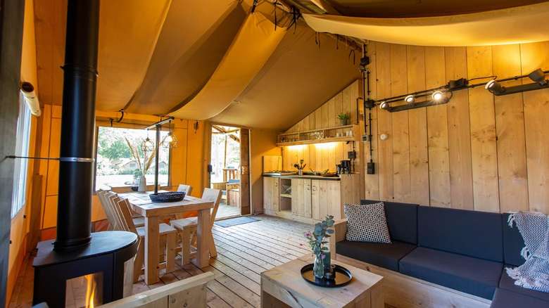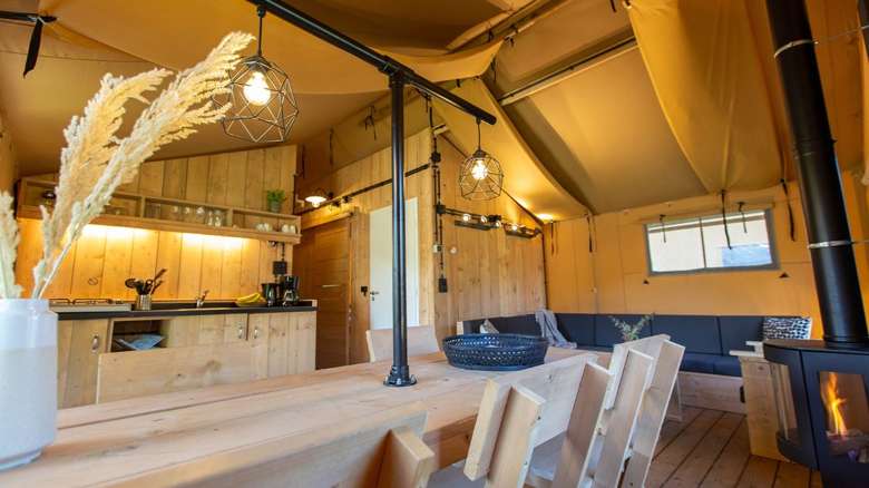 Auf dem gemütlichen Hertenkamp finden Sie unsere Luxus Thermo Zelte für 5 Personen. Diese isolierten Luxe Lodgegezelte sind auch für die kälteren Monate geeignet. Mit den Infrarot-Heizpaneelen können auch wenn es draußen kälter ist einen luxuriösen Campingurlaub inmitten der Natur genießen genießen.