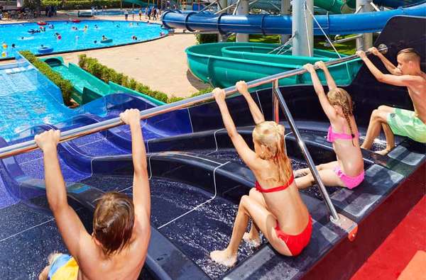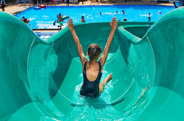 Beheiztes Freibad, fünf Rutschen und Wasserspielhaus!